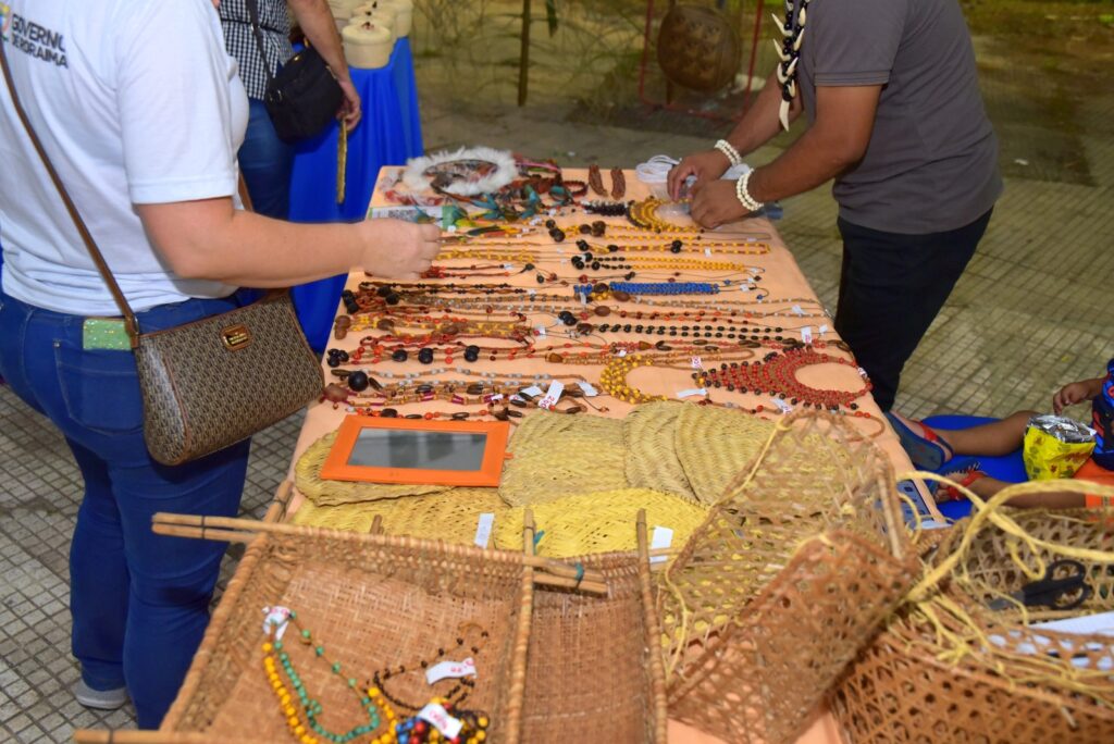 Uma dessas artesãs é a Vanda Domingos da Silva, da comunidade indígena Canauanim, município do Cantá, pertencente à etnia Macuxi. Junto a outros artesãos, apresentou peças como colares, brincos, cocar, cestarias feitas de fibra de buriti, arumã, cipó titica, entre outros itens. Ela falou sobre o espaço cedido pelo Governo para a amostra de artesanato.