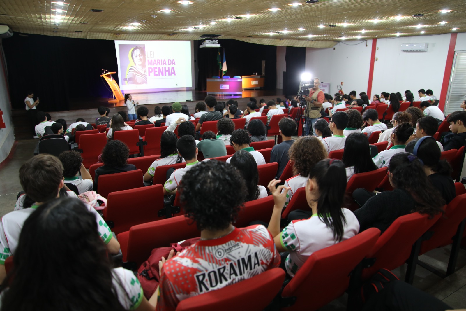Pelo menos 70 alunos do ensino médio participaram da ação, que abordou os tipos de violência, como prevenir, canais de denúncia e redes de apoio para as vítimas do crime tipificado por meio da Lei Maria da Penha. O convite surgiu do IFRR, em alusão à campanha de combate à violência Agosto Lilás.