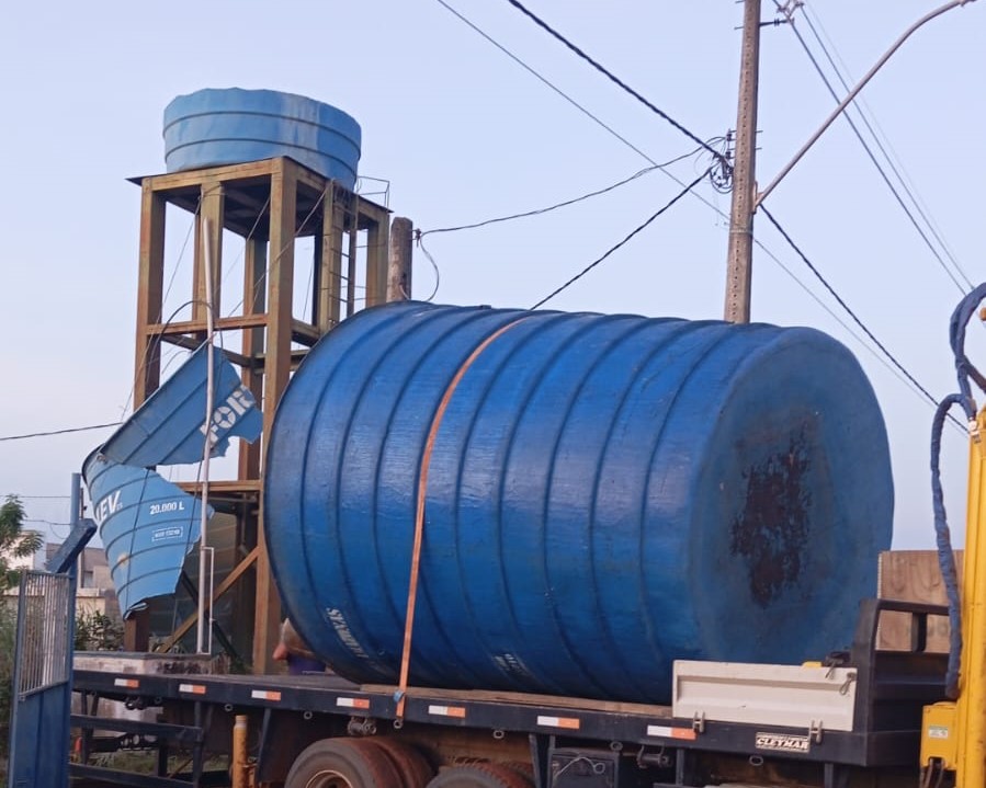 Caer substitui caixa d’água de loteamento que rompeu com forte calor