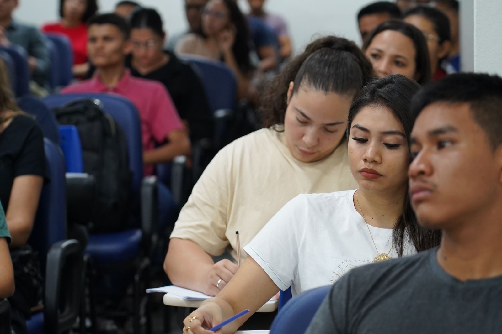 Turma lotada e olhos atentos na noite desta segunda-feira (16), para o início das aulas do curso preparatório para o concurso público do Tribunal de Justiça de Roraima (TJRR), ofertado gratuitamente pela Escola do Legislativo (Escolegis). Quase 200 estudantes realizaram a inscrição para a concorrida capacitação, em busca da realização do sonho de um cargo público efetivo.