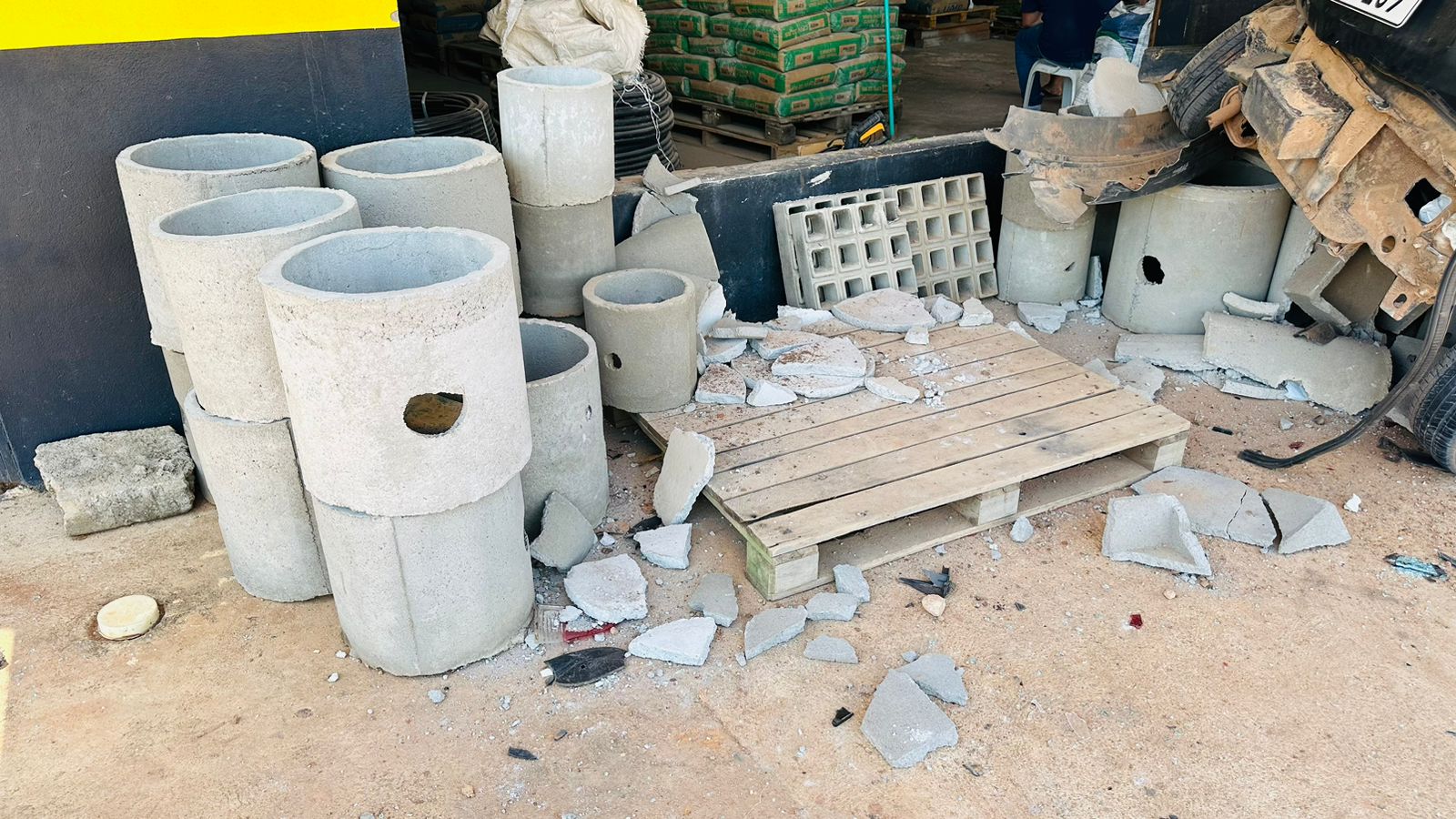 Dono da loja e um cliente estavam na frente da loja quando percebeu o veículo correram para o interior do estabelecimento comercial, eles não foram atingidos.