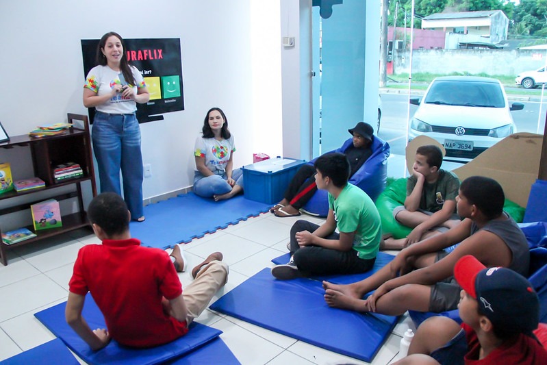 O hábito de ler enriquece o vocabulário e amplia o conhecimento das pessoas que mergulham nas páginas dos livros. No Centro de Acolhimento ao Autista (Teamarr), do Programa de Atendimento Comunitário da Assembleia Legislativa de Roraima (ALE-RR), as crianças e adolescentes atendidos pela unidade tiveram a oportunidade de conhecer mais desse mundo por meio da atividade “Leituraflix”.
