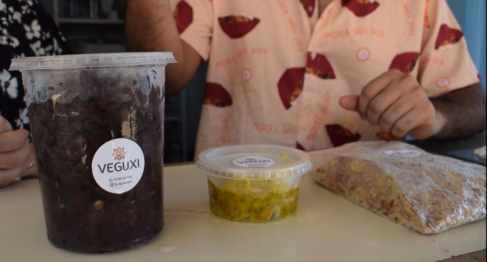 Além da venda de comida vegana na loja física, a Veguxi também trabalha com a linha de congelados a pronta entrega, como explica Gabriel. “Aqui na Veguxi a gente tem a nossa linha de congelados como hambúrguer, vatapá, escondidinho, para facilitar a vida de veganos e vegetarianos. De forma mais prática eles podem preparar suas refeições em casa, a gente tem um grande problema da falta de opções em Boa Vista, então a gente vem com essa possibilidade para oferecer uma refeição mais saudável”.