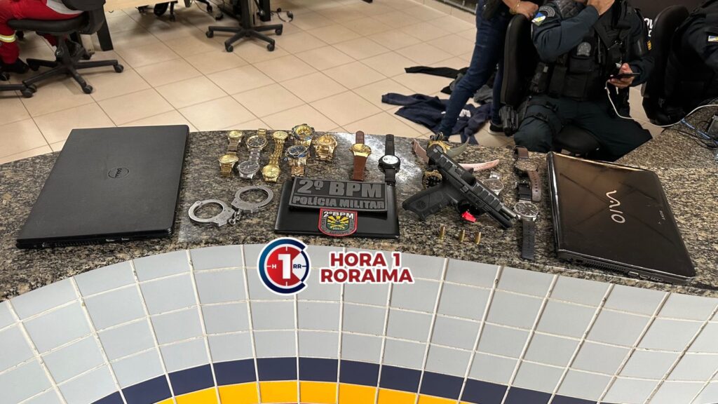 Na residência de D.D.S., foram encontrados três relógios de procedência duvidosa, dois moletons (um preto e um cinza) usados no dia do furto, e uma algema que pertence à polícia civil. D.D.S. informou o paradeiro de seu irmão J.D.S., que foi localizado no bairro Cruzeirinha.