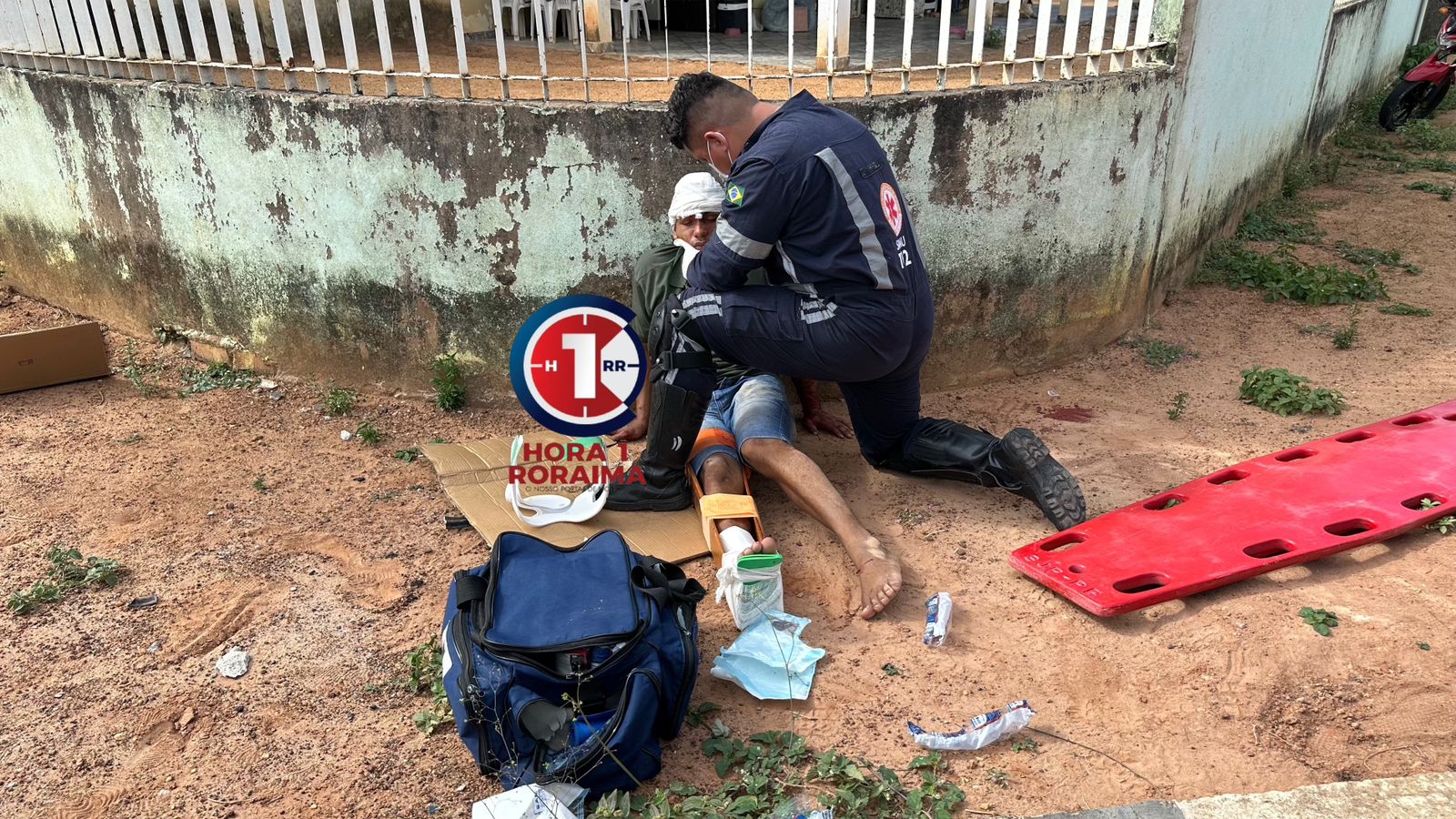 Os socorristas realizaram os primeiros atendimentos, limpando e higienizando os ferimentos. A perna do motociclista foi imobilizada com tala e atadura, enquanto o corte na cabeça, que causou grande perda de sangue, foi estancado e enfaixado. Após os procedimentos iniciais, ele foi colocado em uma maca e encaminhado ao Pronto-Socorro Francisco Elesbão, referência no atendimento de traumas.