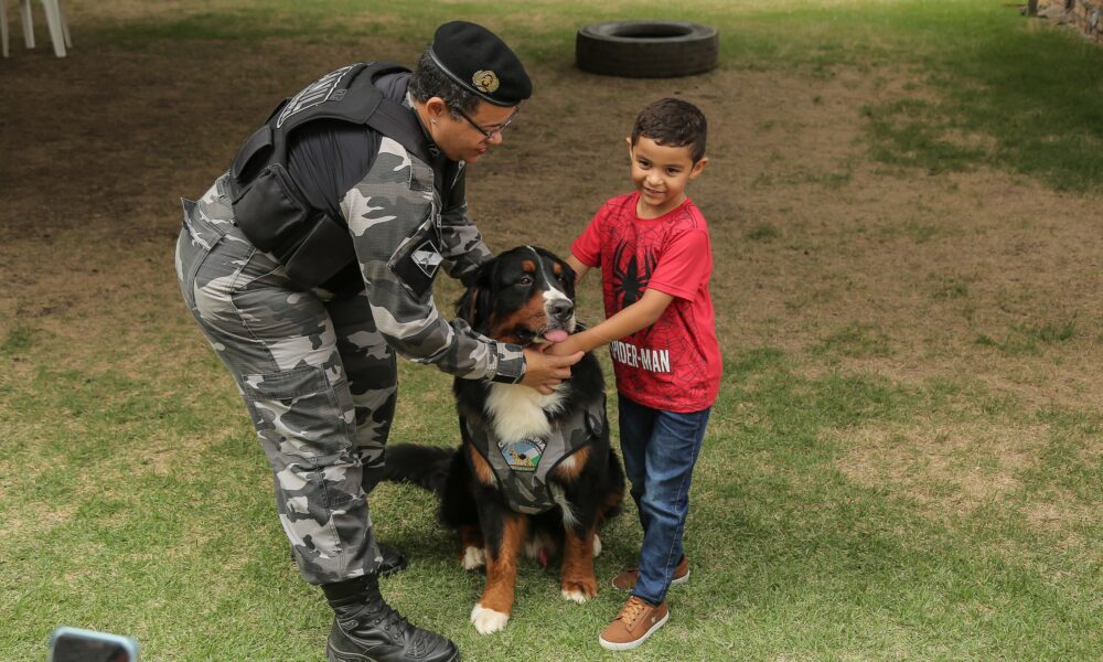 CINOTERAPIA Crianças assistidas pelo Teamarr vivenciam momento especial com mascote da Polícia Militar Por Hora 1 Roraima Cão da raça Bernesse, o Zorro, auxilia pacientes e...