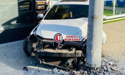 Motorista sofre um corte na cabeça após colidir fortemente contra poste Acidente em Boa Vista Deixa Motorista Ferido e Bairro Sem Energia Por Hora 1 Roraima...