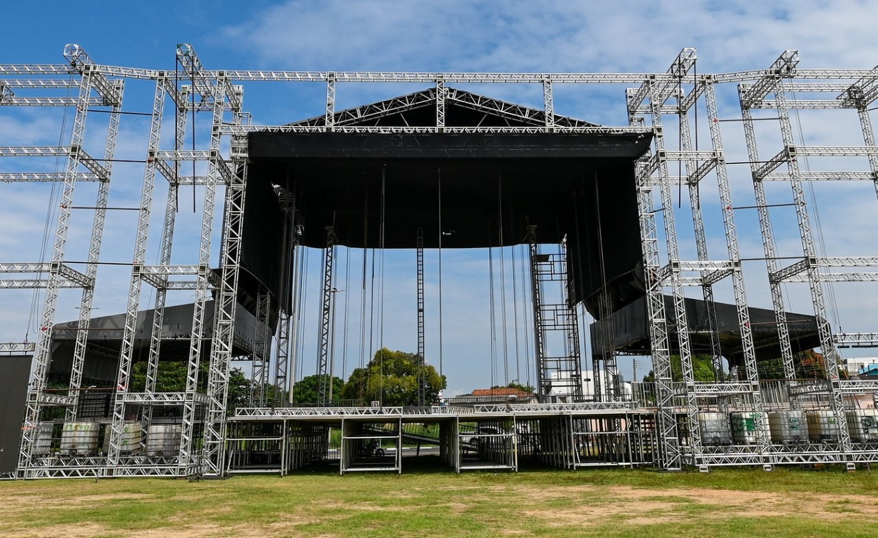 “Estamos com 70% da estrutura concluída. A prefeitura faz esse trabalho com antecedência para garantir a segurança de artistas, trabalhadores e da população. Os palcos têm dimensões nunca vistas na cidade. São estruturas em tamanhos e proporcionalidades inéditas, tanto nas outras edições do festival quanto em eventos de Boa Vista. De maneira geral, temos um trabalho de estrutura e cenografia para cada palco que vai realmente surpreender nesta 3ª edição”, contou o presidente da FETEC, Dyego Monnzaho.