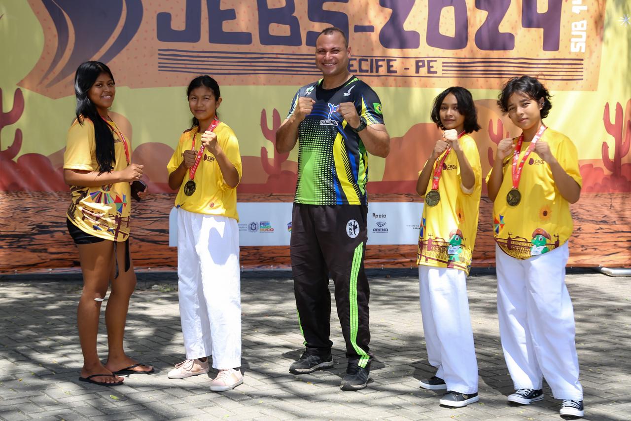 As meninas da equipe de taekwondo de Roraima brilharam nos Jogos Escolares Brasileiros (JEBS), conquistando quatro medalhas de bronze. As disputas foram realizadas nesta quarta-feira, 25, no ginásio do Complexo Esportivo Santos Dumont, em Recife (PE) e a premiação ocorreu na manhã desta quinta-feira, 26.