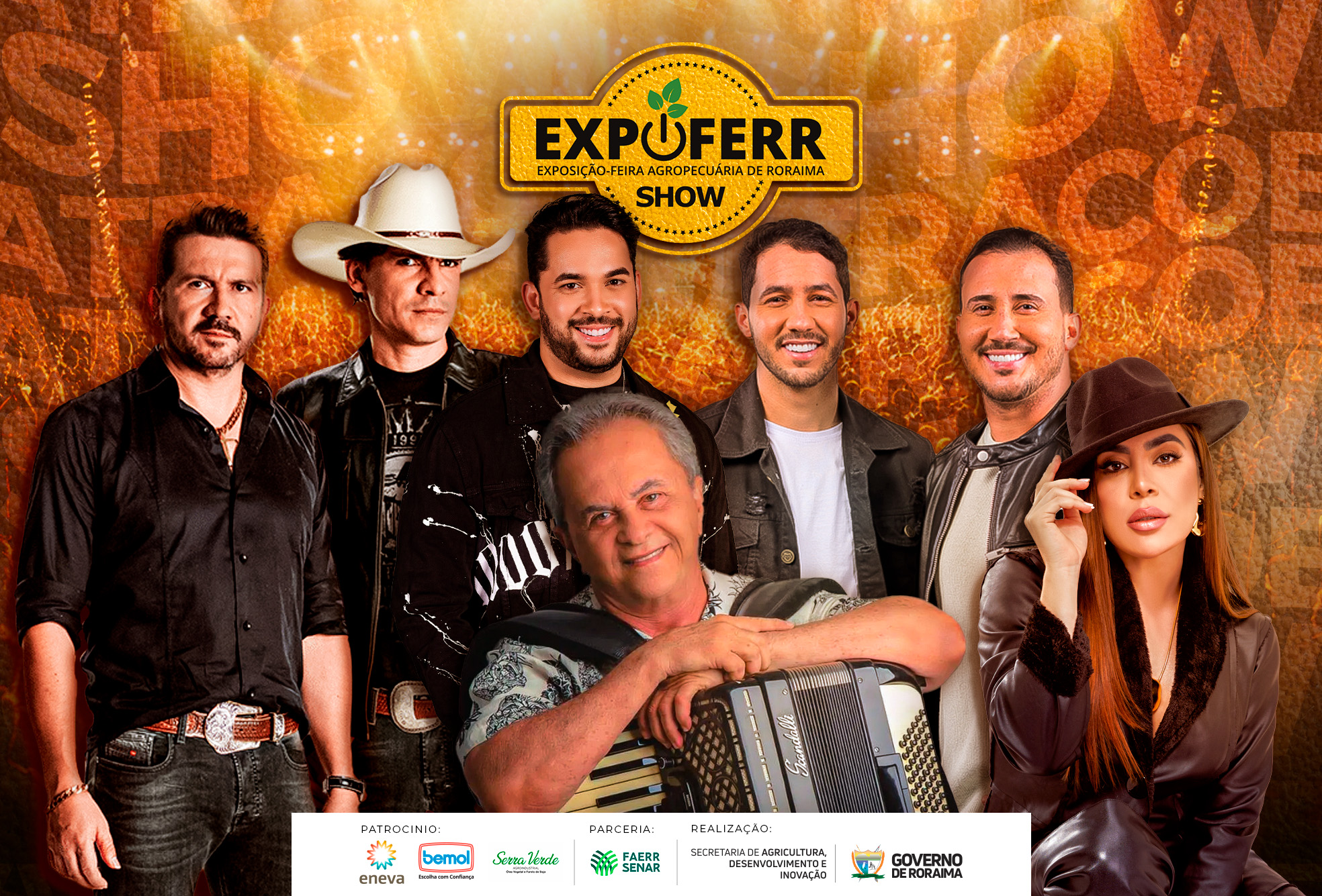 “A Expoferr Show é um dos maiores festejos do nosso Estado e, em todas as edições, temos buscado trazer atrações musicais variadas, que abracem a grandiosidade que é esse evento, que se tornou de alta importância para a economia e para a agropecuária de Roraima”, explicou.