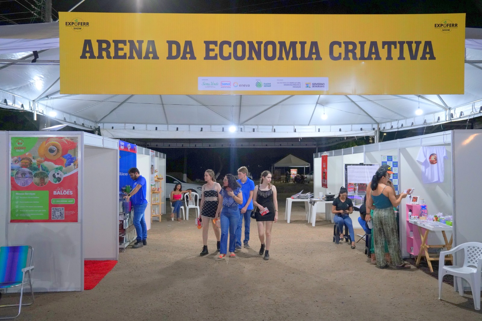 Entre os estandes da Arena, estão os expositores com serviços de Internet via Starlink, Shery Balões, que trabalha com balões personalizados, Erma Personalizados, CopyNet entre outros.