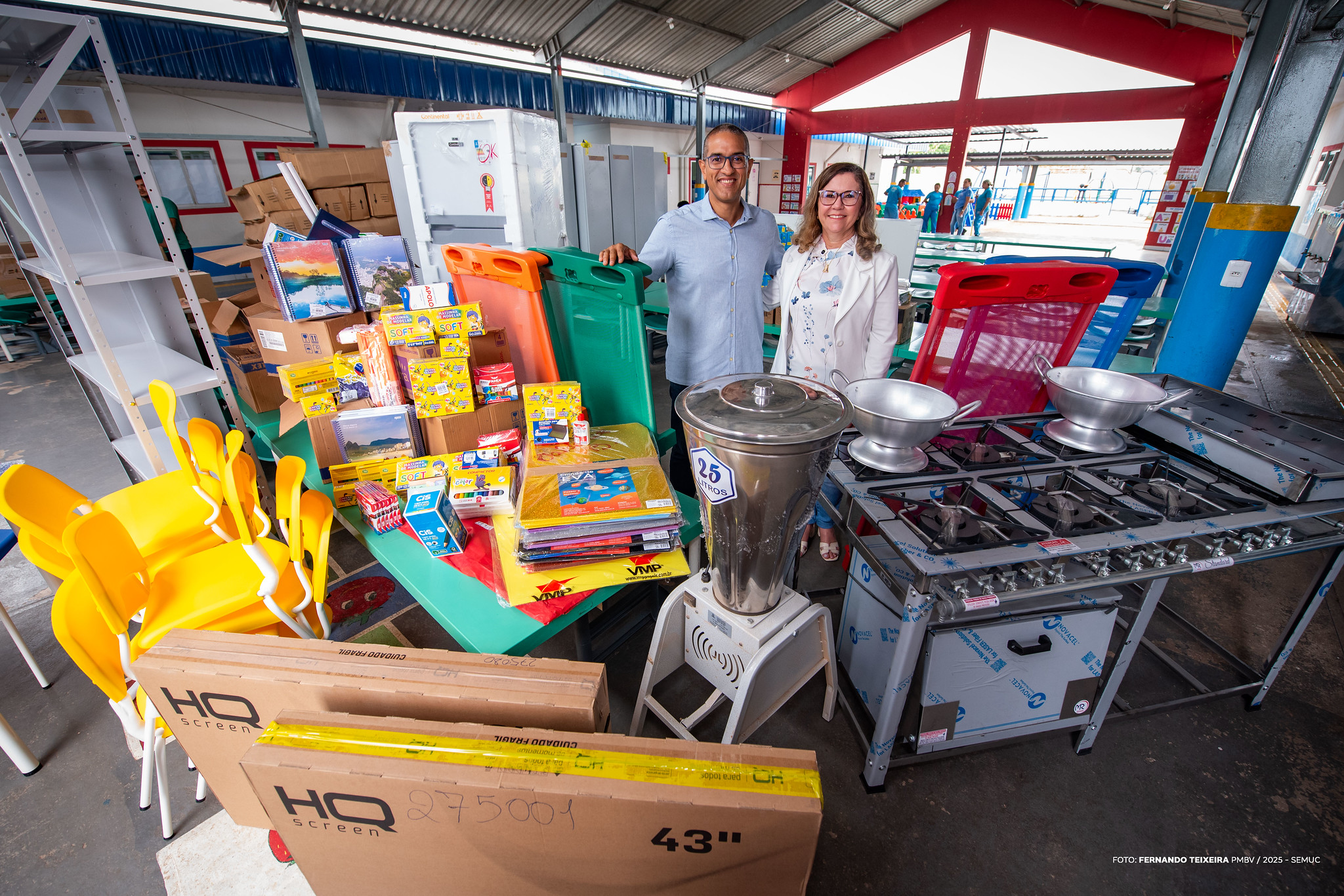 São mais de 344 mil itens, entre canetas, borrachas, colas, réguas, tinta guache, giz de cera, cadernos capa dura, dentre outros. Já as mobílias incluem cadeiras, mesas, geladeiras, armários, televisões, kits de merenda escolar (copo, colher, prato, cumbuca e bandeja), televisões e outros itens. Os materiais, tanto os didáticos como as mobílias são entregues conforme demanda das próprias unidades, que ao verificarem a necessidade, acionam a Secretaria Municipal de Educação (SMEC) para aquisição.