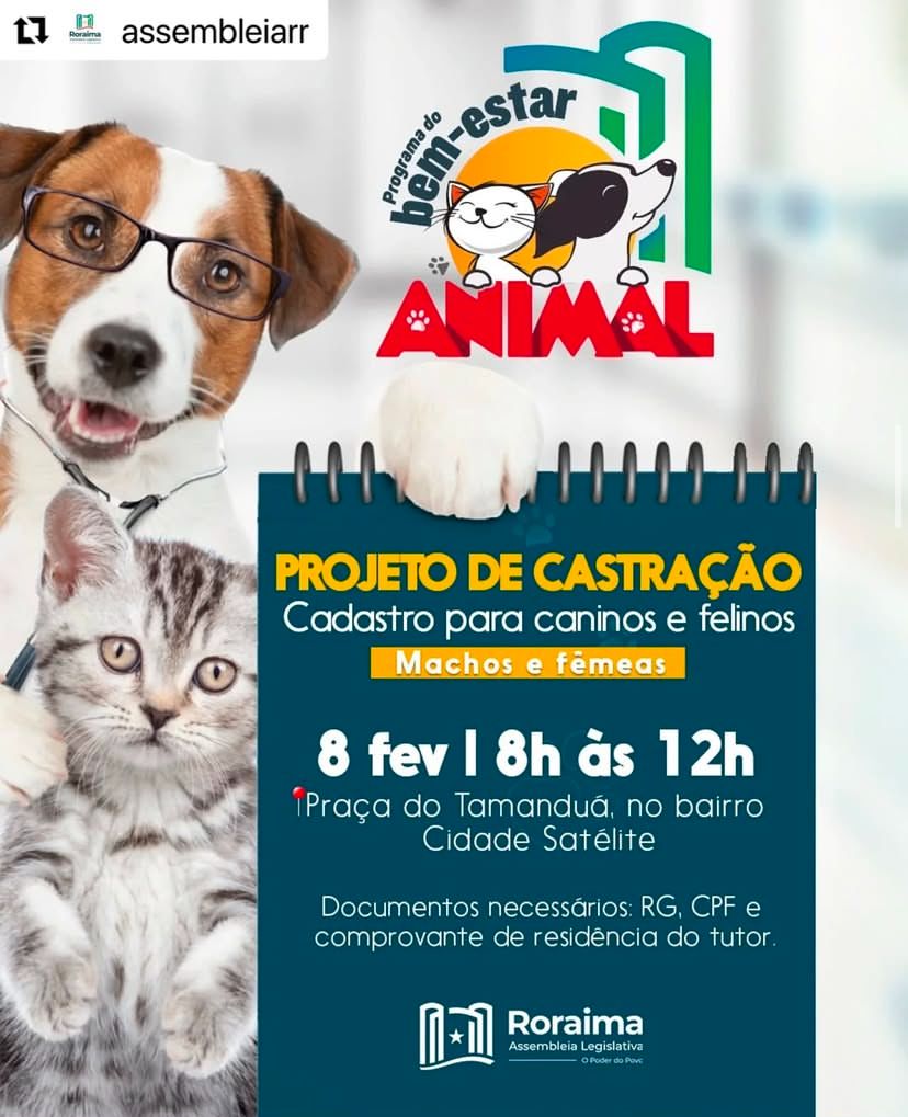 Vai até o perfil da @assembleiarr e comenta em que bairro você gostaria que estivesse o castramovel!!!!