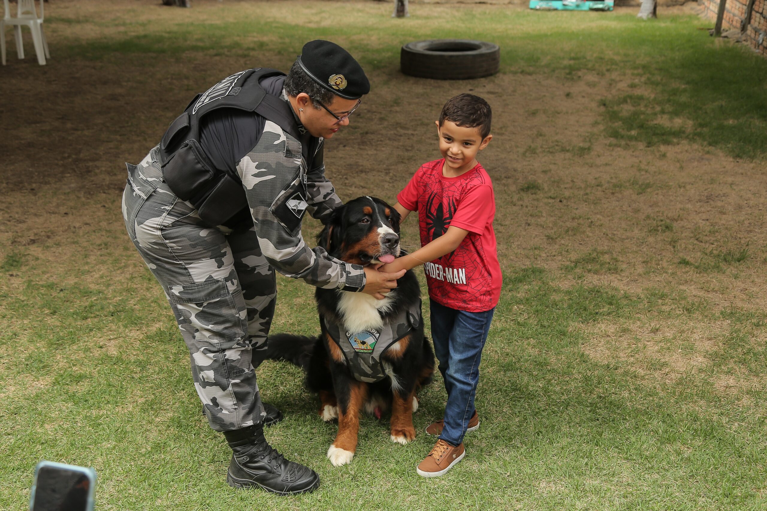 Crianças assistidas pelo Teamarr vivenciam momento especial com mascote da Polícia