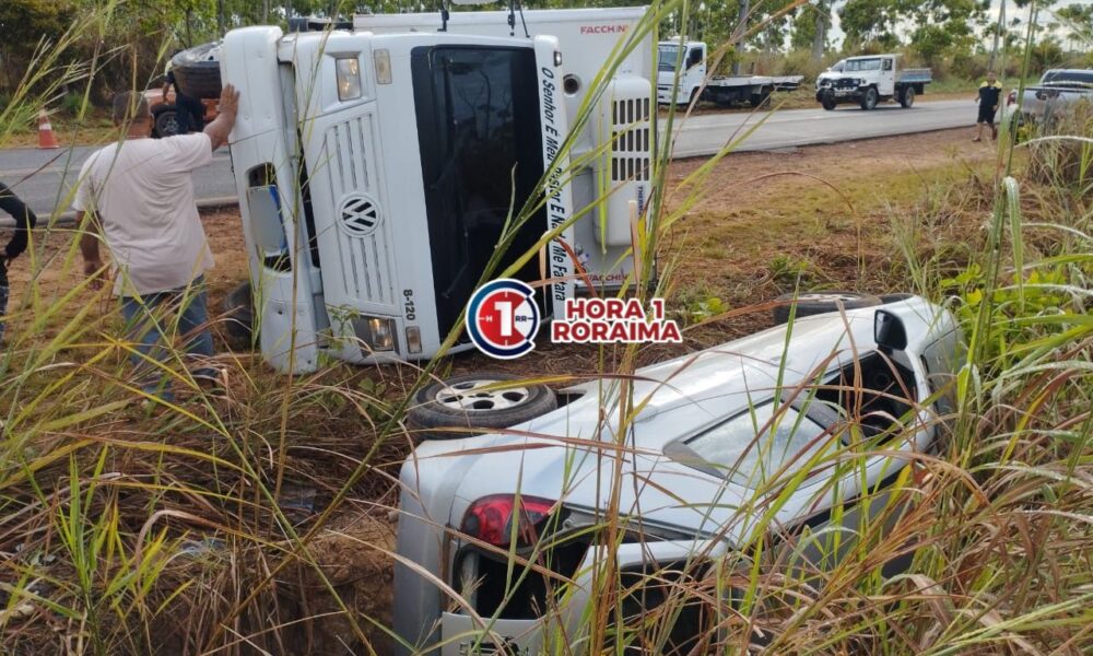 Caminhão Tomba ao Evitar Colisão na Avenida Principal do João de Barro Motorista e Ajudante Saem Ilesos em Acidente Envolvendo Três Veículos Por Hora 1 RR...